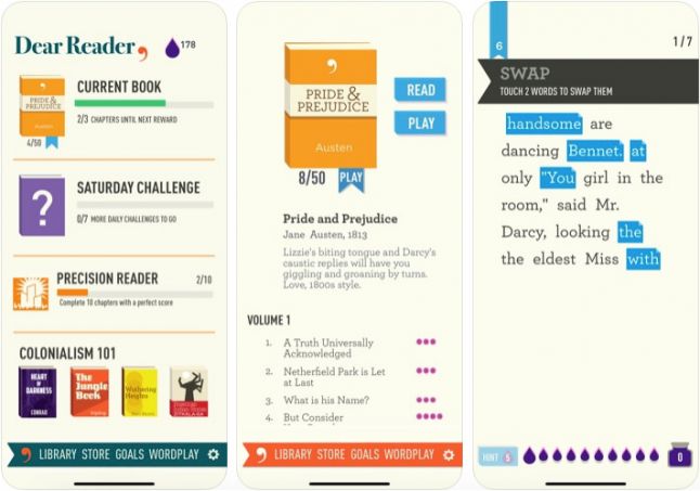 Dear Reader takes troves upon troves of literature and combines that wealth of source material with its own varied word-based puzzles to create a game that’s as difficult to put down as a good book. One puzzle might task you with arranging lines from a chapter Pride and Prejudice into the proper order, another might see you removing errant words from an Emily Dickinson poem. It can be an interesting way to piece apart otherwise familiar works while playing on the more leisurely difficulty, or a challenging way to flex your literary know-how on higher, timed difficulties. But all in all the nature of the puzzles themselves offer a fun way to explore each book, whether it’s your first time seeing that particular story or you’re working your way through an old favorite.